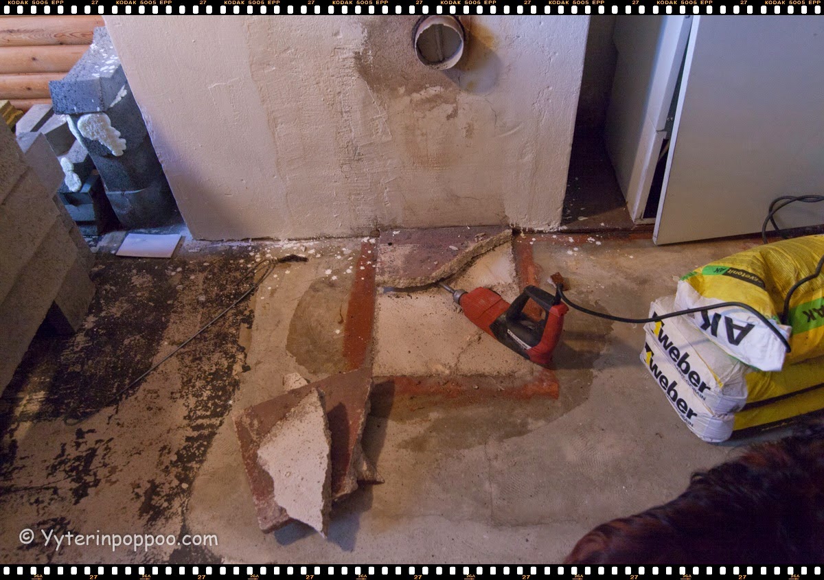 Takkahuone II lattiamatto poistetaan ja viemärin kohdalta lattia pestään Kloritilla ja annetaan kuivua rauhassa (muutaman viikon), ennen kuin alamme vetämään uutta mattoa ..